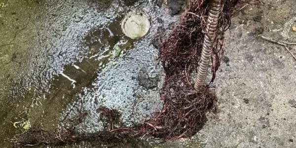 The homeowner didn’t mention that they had used Drano, but thankfully our plumber already had gloves on. Still, it’s always important for us to know when chemicals were poured down the drain so we can make sure our safety gear is fully in place.